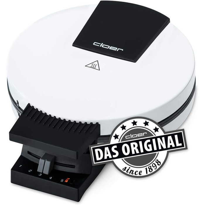 - Міцний дизайн: Білий лакований металевий корпус робить вафельницю Cloer довговічною та стильною.
